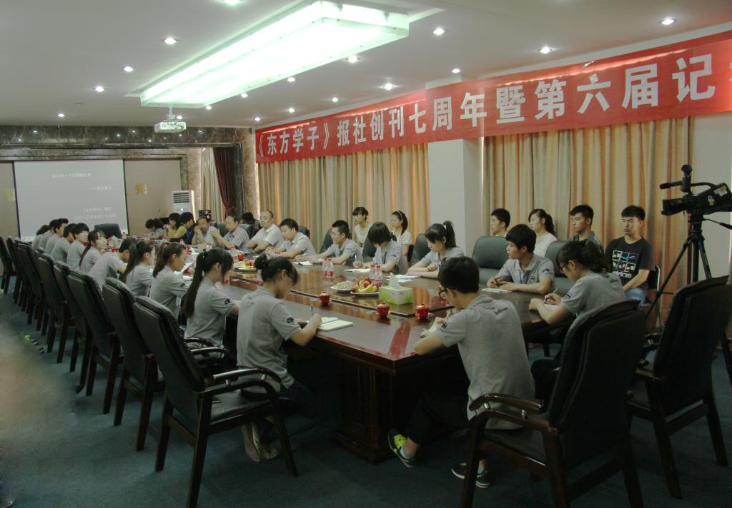 风雨七年,一路同行。由《东方学子》报社主办的《东方学子》报刊七周年暨第六届记者节座谈会于5月25日9点在我校综合楼会议厅举行。校长甄忠义,副书记副校长王志民,院长助理甄墨,学生工作处处长魏立峰,团委书记兼学工处副处长梁泽光应邀出席了本次座谈会。《东方学子》报社全体成员及校级学生组织部门代表参加了座谈会。